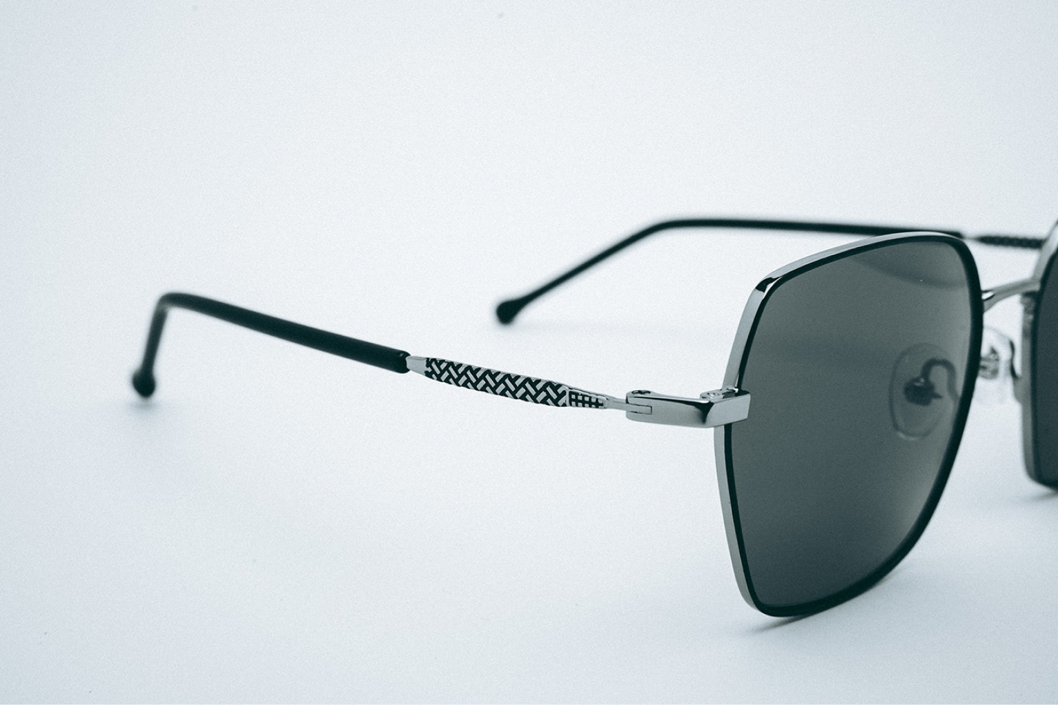 Cada plano fotográfico se pensó con intención: vistas frontales y laterales limpias, macros de vidrio y patillas, todo bajo una estética minimalista que transmite calidad y transparencia.